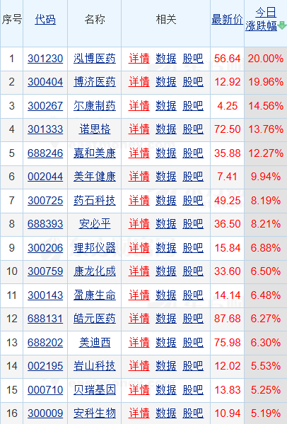早盘,AI制药(医疗)板块表现活跃,截至发稿板块内3只个股涨停。泓博医药、博济医药20CM涨停,诺思格涨超11%,嘉和美康涨超10%,美年健康涨停,尔康制药涨超9%,理邦仪器、药石科技涨超8%,安必平涨超7%,康龙化成、盈康生命、美迪西涨超6%,贝瑞基因、皓元医药涨超5%。