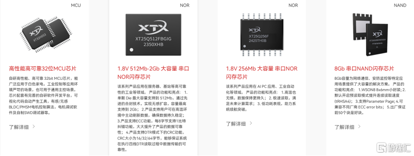 芯天下技术一直在中国从事存储芯片业务,专注于代码型闪存芯片的研发、设计及销售,以Fabless模式为客户提供从1Mbit至8Gbit大容量范围的多种代码型闪存芯片。公司目前已逐步将产品扩展至模拟芯片和MCU。