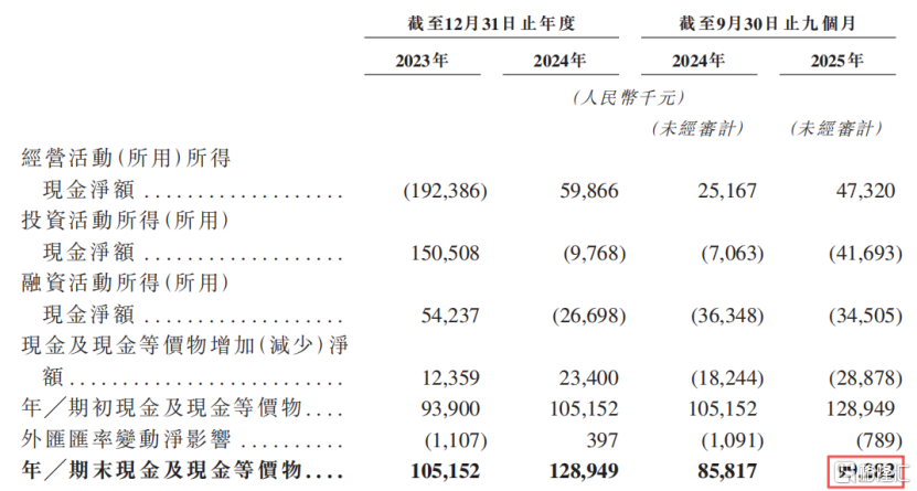 截至2025年9月底,公司账上现金及现金等价物为9928.2万元,较2024年底的1.29亿元有所减少。