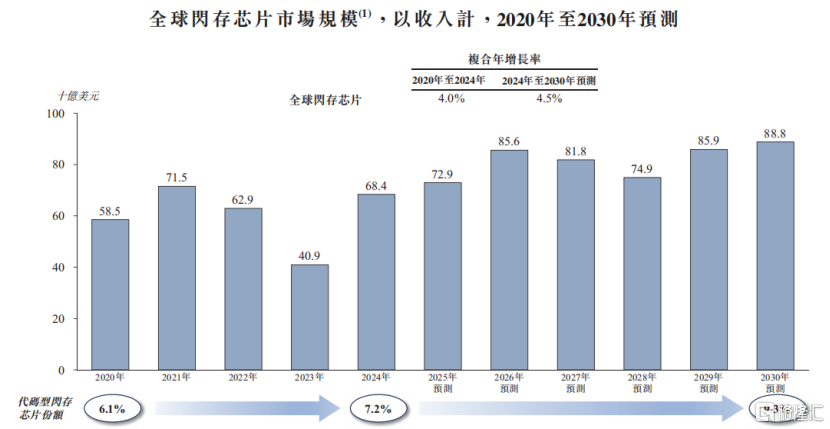 全球闪存芯片市场规模,来源:招股书