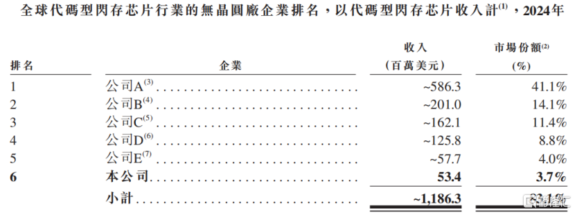 全球代码型闪存芯片行业的无晶圆厂企业排名,来源:招股书
