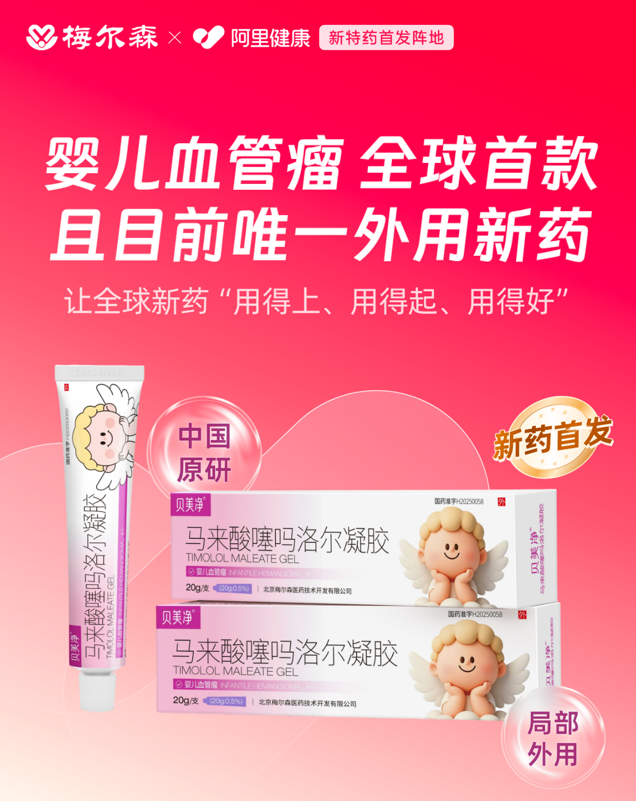1月13日,全球婴儿血管瘤治疗领域迎来一项来自中国的里程碑式解决方案。由北京梅尔森医药技术开发有限公司历时十二年自主研发的改良型新药——马来酸噻吗洛尔凝胶(商品名:贝美净®),在阿里健康全网独家首发。即日起,家长只需通过淘宝搜索“贝美净”,经在线专业问诊后,即可开启科学、安心的规范治疗。