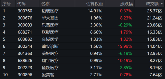 医疗器械ETF基金(159797)标的指数权重股多数飘红:迪安诊断20CM涨停,翔宇医疗涨超10%,华大基因涨超8%,联影医疗涨超2%,金域医学涨超1%,迈瑞医疗微涨。