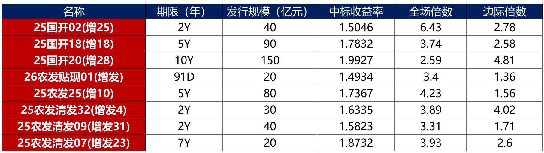 债券招标情况