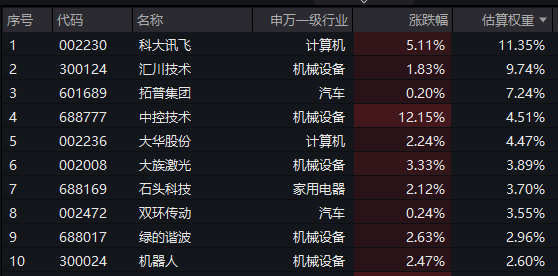 【机器人ETF基金(159213)标的指数前十大成分股】
