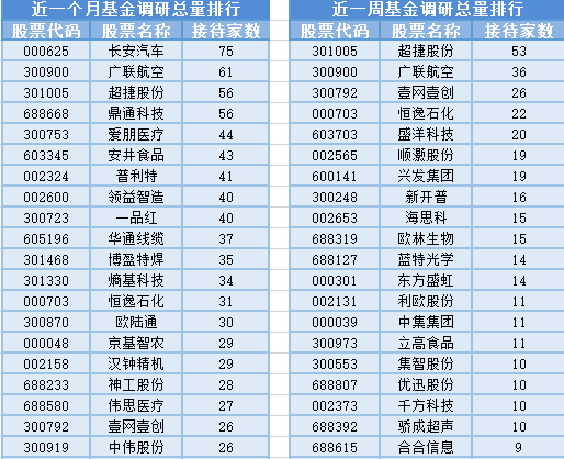 从个股调研情况上来看,最近1个月(12月15日-1月14日)最受公募基金关注的是长安汽车,长安汽车属于汽车制造行业,主营业务为整车研发、制造和销售以及发动机的研发、生产。共有75家基金管理公司参与调研,其次是广联航空和超捷股份,分别接受61家、56家基金管理公司的调研。