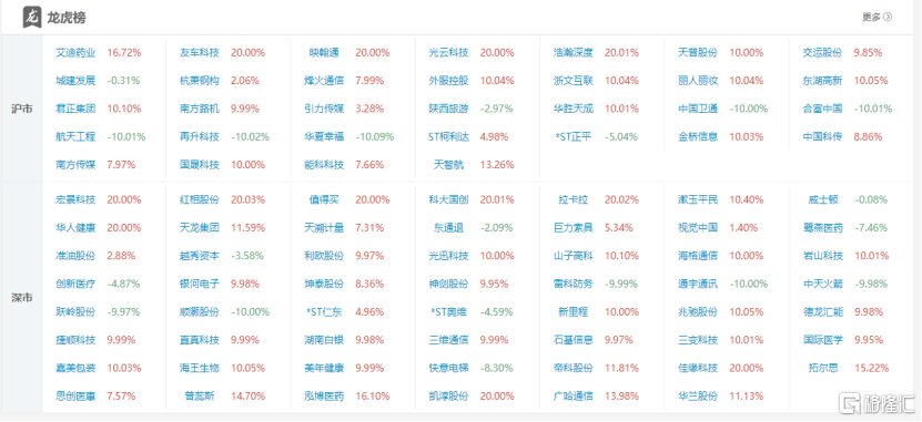 焦点股方面,实控人变更的嘉美包装19天14板,友邦吊顶10天8板,银河电子8天7板,国晟科技8天5板,利欧股份、美年健康等4连板,浙文互联、天下秀等4天3板,新华网、三江购物3连板,国际医学、海王生物2连板。