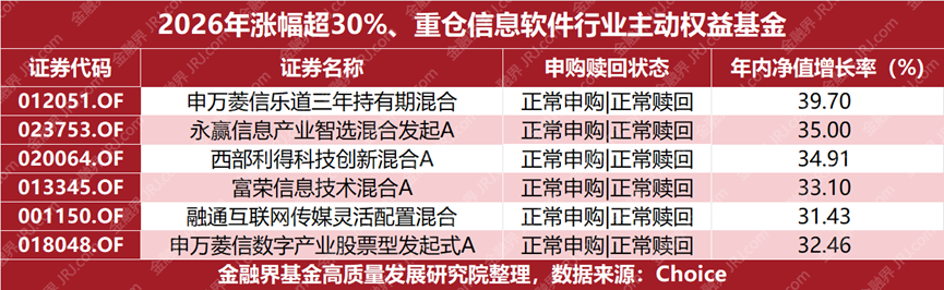 资金狂热追逐的背后,是2025年AI板块极致的赚钱效应。Choice数据显示,德邦稳盈开年以来净值涨幅已达29.48%。2025年三季报显示,该基金前十大重仓股高度集中于AI应用板块。此外在重仓AI应用的基金中,申万菱鑫乐道三年持有年内的净值涨幅已接近40%,西部利得科技创新、申万菱信数字产业、永赢信息产业智选等多只基金同期涨幅也超过30%,形成强劲的板块效应。