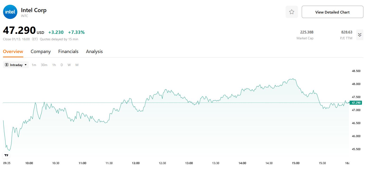 这一涨势主要受1月13日KeyBanc Capital Markets发布的利好研报推动,该投行将英特尔的评级上调至“增持”,并设定60美元的目标价,较发布当日股价有超过35%的上涨空间。