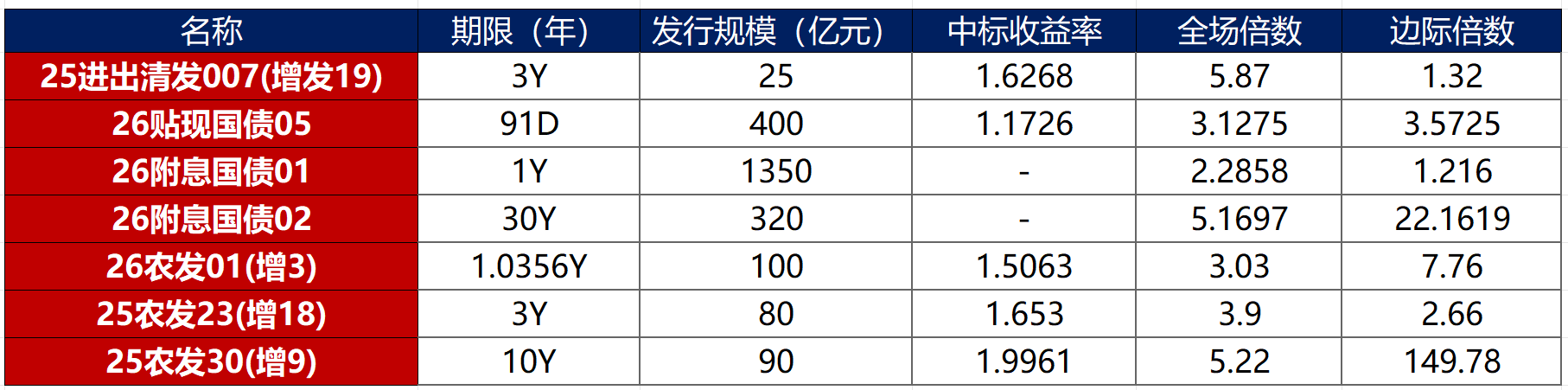 债券招标情况