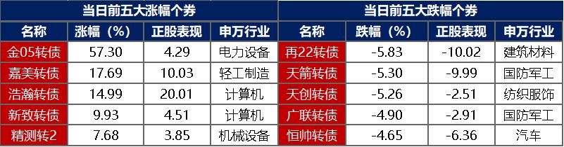 【转债市场主要指数有所分化】 1月14日,转债市场跟随权益市场震荡分化,中证转债、深证转债分别收涨0.15%、0.47%,上证转债收跌0.10%。转债市场成交额1114.29亿元,较前一交易日放量75.85亿元。转债市场个券大多下跌,385支转债中,47支收涨,327支下跌,11支持平。当日上涨个券中,泰福转债涨超10%,精达转债、宝莱转债涨超7%;下跌个券中,崧盛转债跌逾14%,再22转债跌逾13%。