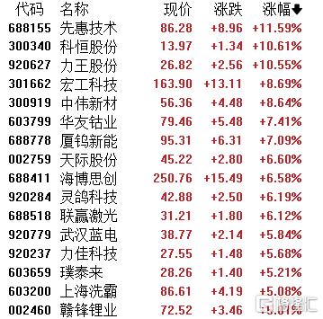 板块内个股表现活跃。截至发稿,先惠技术领涨,华友钴业涨超7%,赣锋锂业涨超5%;龙头宁德时代、亿纬锂能同步上扬,天齐锂业、先导智能、天赐材料等产业链核心公司均跟涨响应。