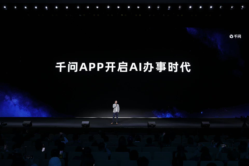 发布会现场,千问C端事业群总裁吴嘉演示了AI外卖功能:仅通过一句语音指令“帮我点40杯霸王茶姬的伯牙绝弦”,千问App便直接调用淘宝闪购服务完成下单,全程无需跳转,在端内直接通过AI支付完成交易。不久后,淘宝闪购骑手便将奶茶送至会场。