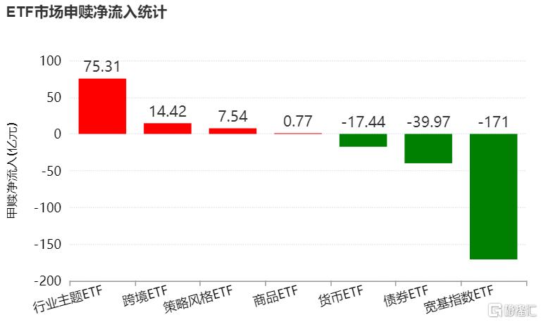 昨日A股巨震下,宽基ETF净流入171亿元,行业主题ETF净流入75.31亿元。