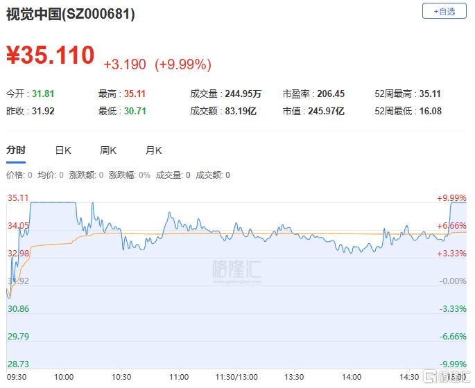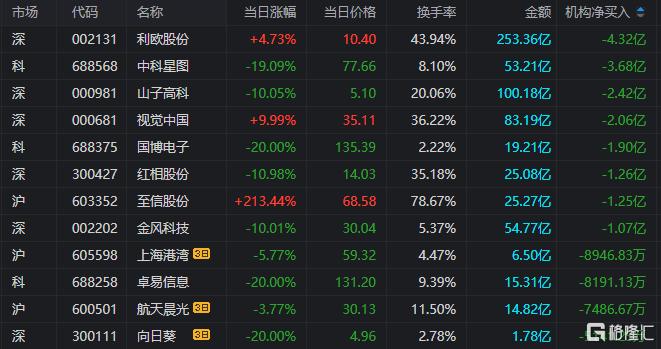 视觉中国:今日涨停,全天换手率36.23%,成交额83.19亿元,振幅14.33%。龙虎榜数据显示,机构净卖出2.06亿元,深股通净买入1630.82万元,营业部席位合计净买入3.85亿元。