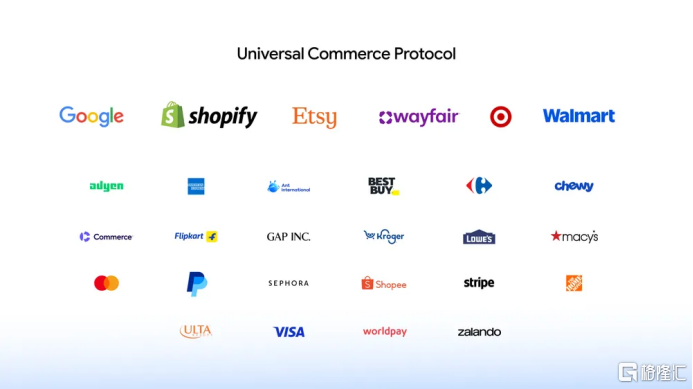这是一项旨在标准化AI代理与零售商之间交互的开源协议,首批参与者涵盖了行业内多个维度的巨头,包括电商独立站平台Shopify,大型综合零售商Walmart、Target,以及金融支付巨头Visa、Strip等公司。