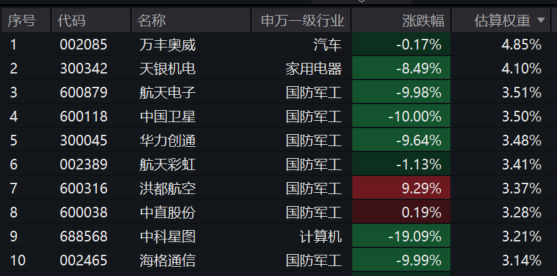 航空ETF基金(159257)标的指数成分股方面涨跌互现,洪都航空涨超9%,中直股份微涨,中科星图大跌超19%,海格通信、中国卫星等跌停,华力创通跌超9%,天银机电等回调。