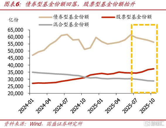 股市上涨改变资产配置方风险偏好,是地方债-国债利差走阔的原因之一。2025年7月 以来,市场风险偏好抬升,A股明显走强。2025年7月至2026年1月14日,沪深300 指数由3943点上涨至4742点,创2022年2月以来新高,累计上涨20%,融资融券余 额自7月起也迅速攀升至历史最高水平。股债跷跷板效应下,市场对债券的投资热情下 滑,如债券基金份额出现回落。随着债券市场情绪走弱,债券收益率也随之明显调整, 其中地方债收益率上行幅度更大。风险偏好提升导致地方债-国债利差走阔。