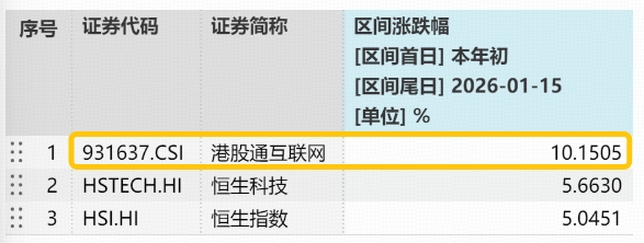 开年以来,港股AI走势活跃,尤其是大模型及AI应用方向。截至1月15日,港股互联网ETF(513770)跟踪的中证港股通互联网指数年内累计上涨10.15%,明显跑赢恒生科技指数表现(5.66%)。