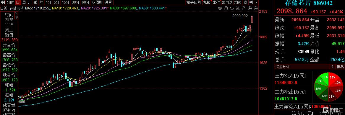 今日A股存储芯片板块指数大涨超4%,年内累涨超18%。