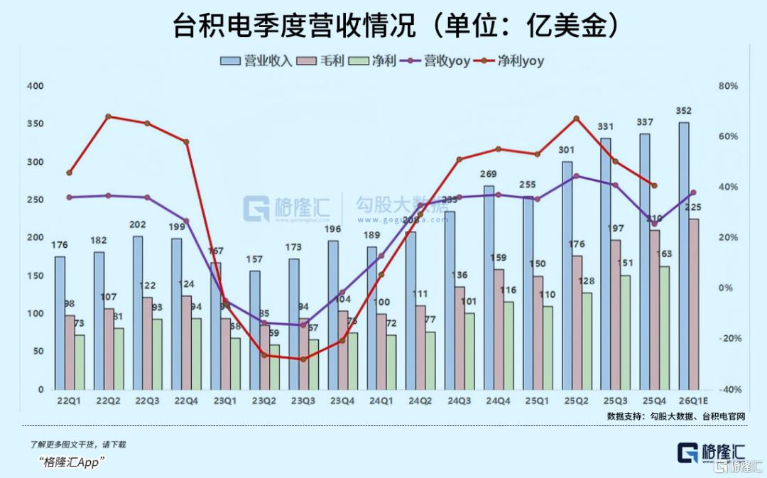 这道光,源自台积电(TSMC)——1月15日,台积电发布25Q4财报与26Q1业绩指引,营收、利润、毛利率、资本开支……每一个关键指标都以碾压之势超越了华尔街最乐观的分析师预测。