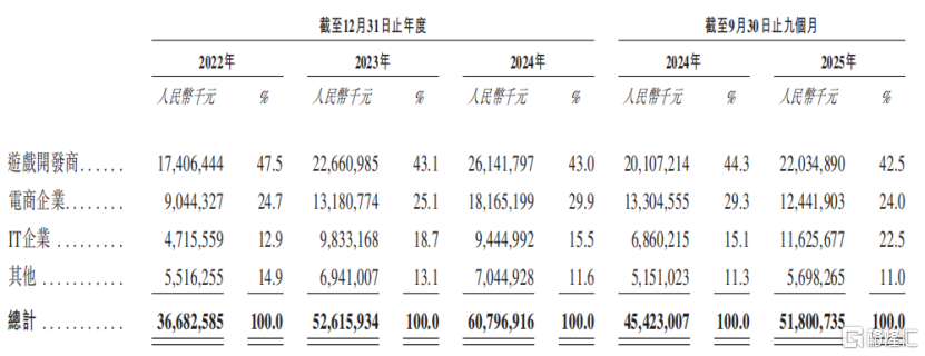 按直接客户所属行业划分的收入明细,来源:招股书