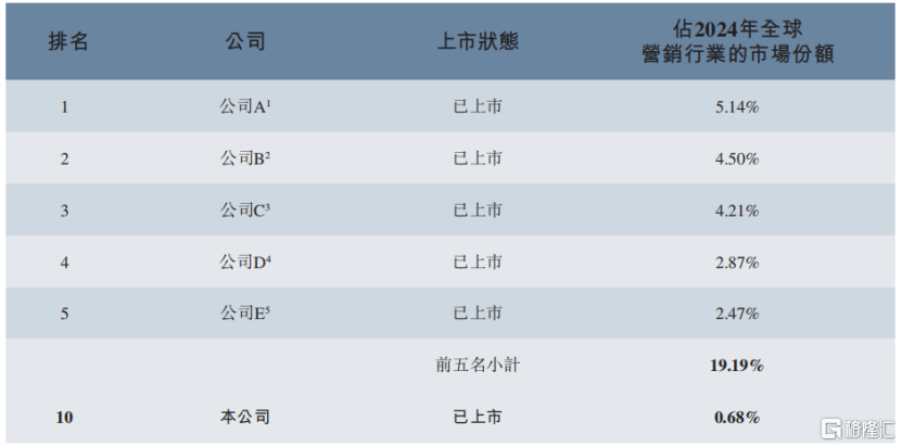 全球营销行业企业排名,来源:招股书