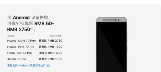 在2025年年末启动降价促销后,苹果又玩起了以旧换新,支持华为、小米等品牌,剑指安卓机型!