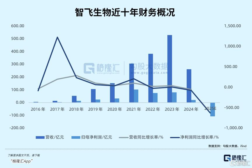 2023年业绩达到峰值之后,2024年,智飞生物营收便直接腰斩。