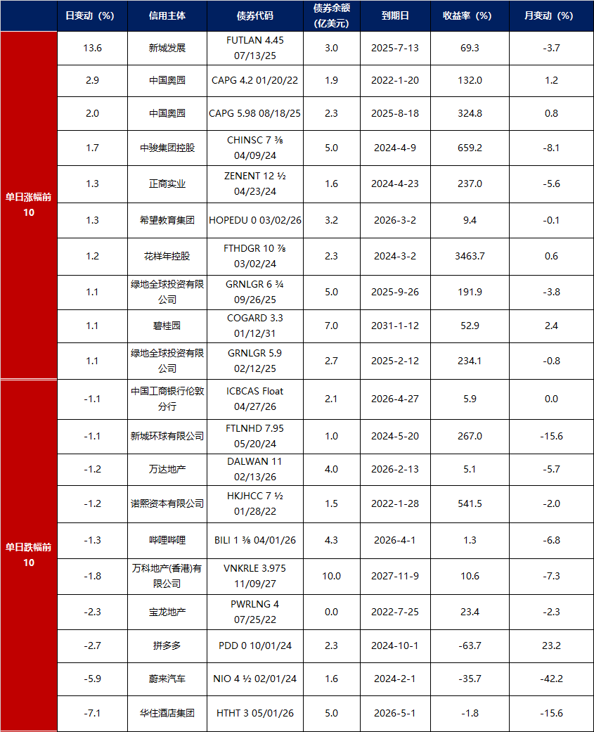 3. 中资美元债每日价格变动(截至1月16日收盘)