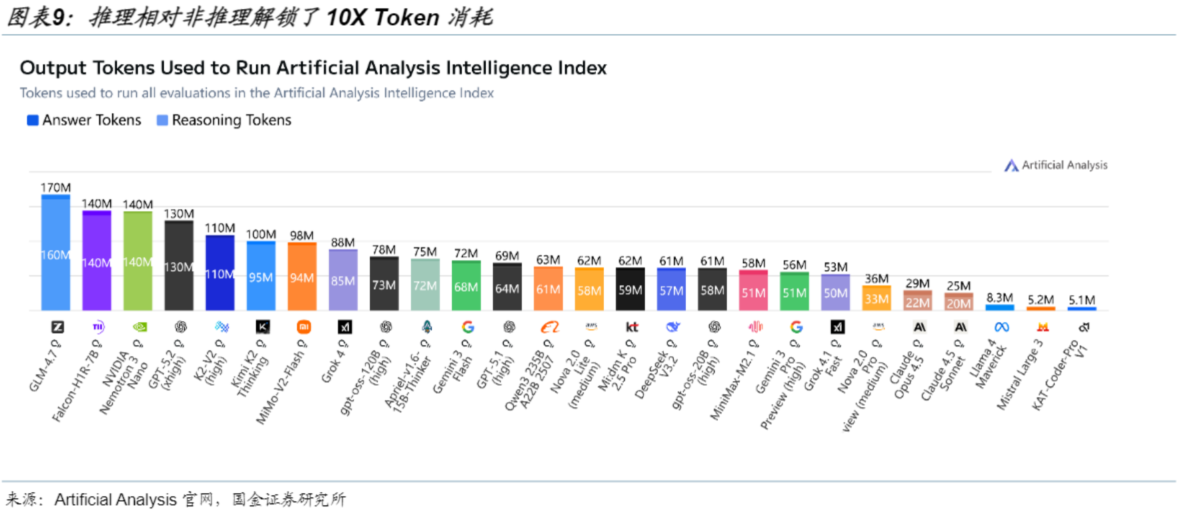 2)推理需求激增:o1类推理模型的出现,使推理阶段的计算量相对传统模型解锁了约10倍的潜力,算力需求已从单一的“训练驱动”转向“训练 推理双轮驱动”。