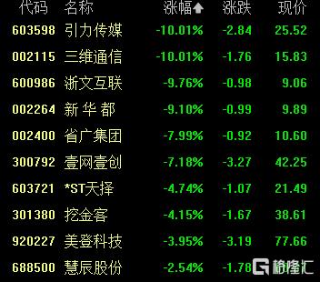 小红书概念走低,引力传媒、三维通信跌停,浙文互联、新华都跌超9%,省广集团、壹网壹创跌超7%。