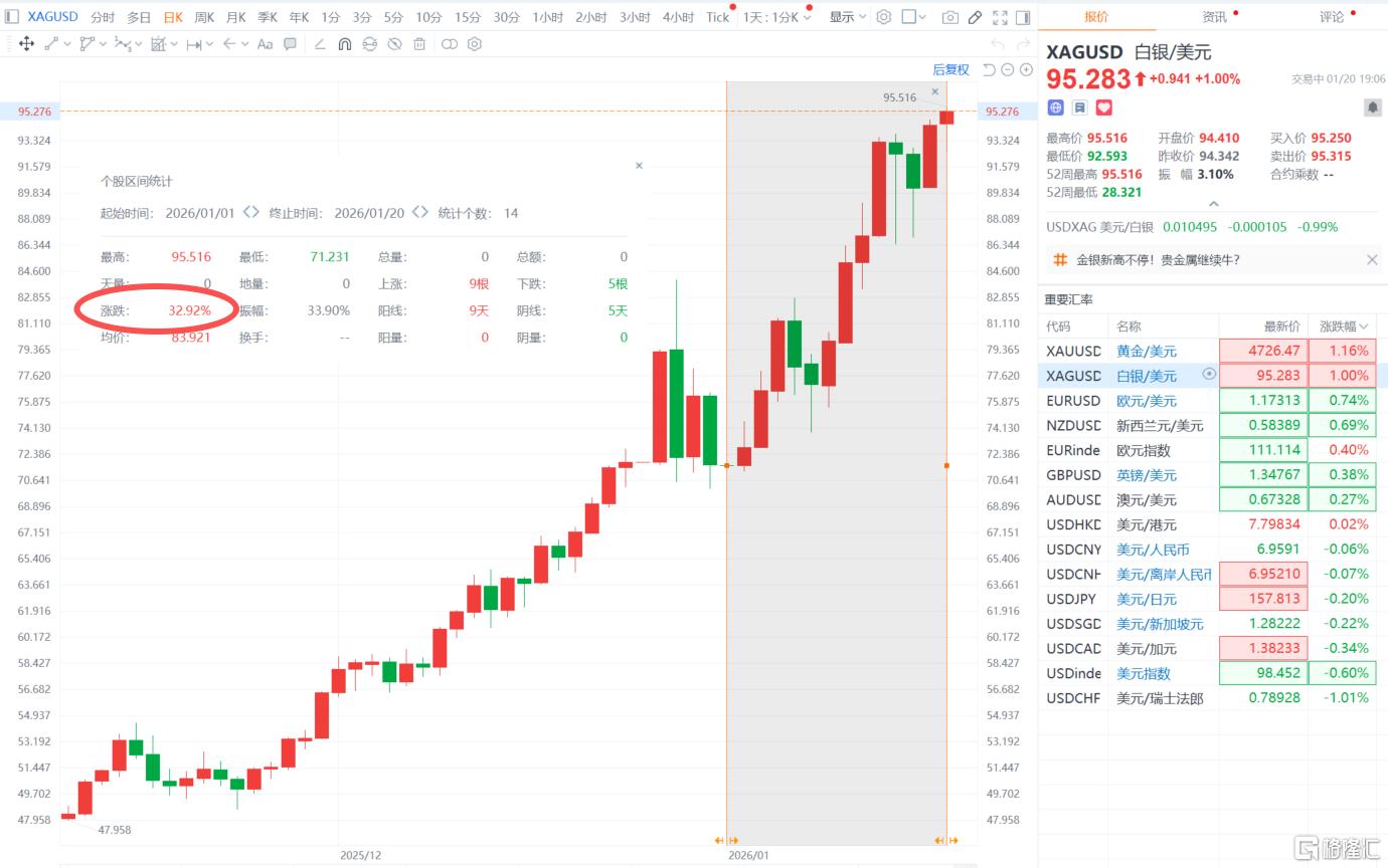 今年开年不到一个月,黄金累计涨幅已近10%,白银更是一马当先累涨近33%。