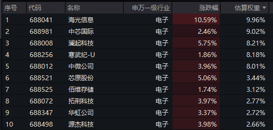 【科创芯片50ETF(588750)标的指数前十大成分股】