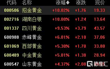 港A贵金属股集体暴涨。A股中,湖南白银、招金黄金强势涨停,四川黄金涨超9%,赤峰黄金涨超6%;港股中,灵宝黄金涨超6%,山东黄金、中国黄金国际涨超4%。