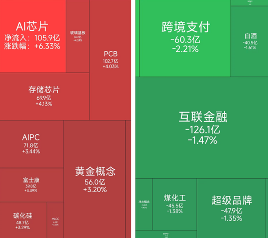1月21日,A股三大指数集体上涨。截至收盘,沪指涨0.08%,报4116.94点,深成指涨0.7%,报14255.13点,创业板指涨0.54%,报3295.52点。从板块行情上来看,今日表现较好的是AI芯片、PCB和存储芯片,而跨境支付、互联金融和煤化工等板块下跌