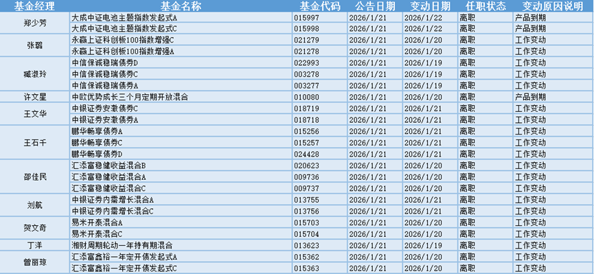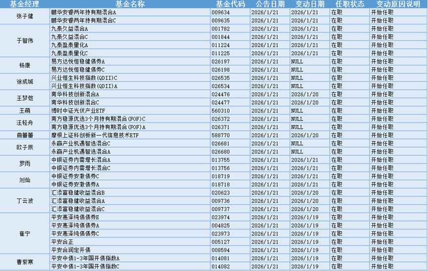 三大指数集体收涨,1月21日有25位基金经理发生任职变动