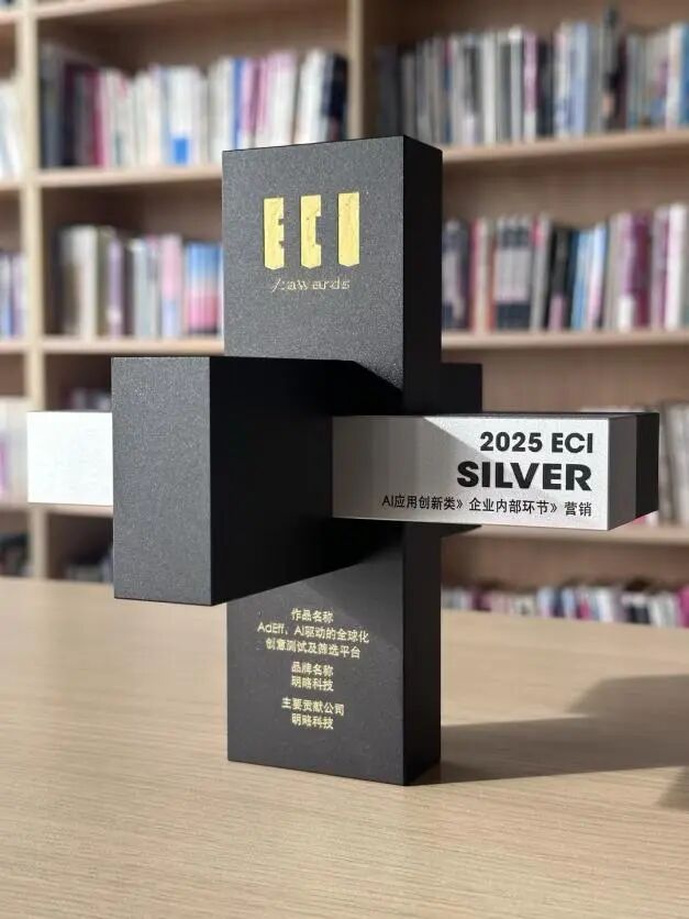 由明略科技研发的,AI驱动的全球化创意测试及筛选平台——AdEff,作为企业营销场景下的垂直智能体工具,凭借全球领先的技术突破、颠覆性的效率革新以及对创意产业未来发展的前瞻性价值,荣获ECI「未来产业大奖-AI应用创新类」银奖。