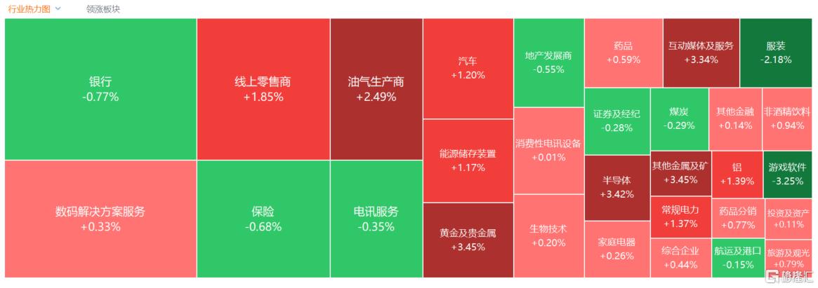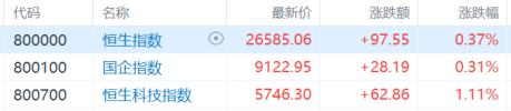港股三大指数临近尾盘现快速拉升行情,恒生科技指数一度涨至1.8%,最终收涨1.11%,恒生指数、国企指数由跌转涨,分别上涨0.37%及0.31%。总体来看市场表现平稳,并未受到隔夜美股大跌影响。