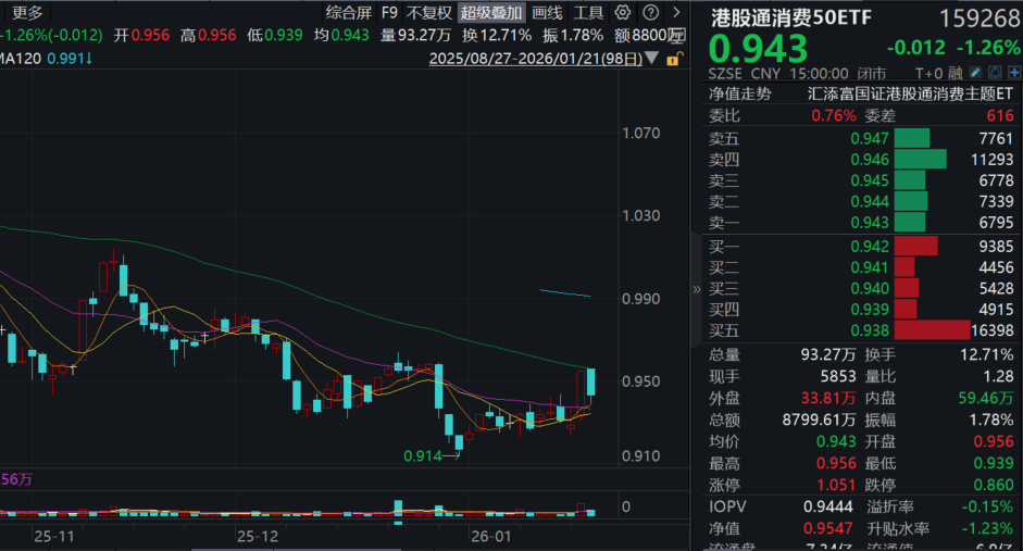 风险提示:基金有风险,投资需谨慎。投资人应当阅读《基金合同》《招募说明书》《产品资料概要》等法律文件,了解基金的风险收益特征,特别是特有风险,并根据自身投资目的、投资经验、资产状况等判断是否和自身风险承受能力相适应。基金管理人承诺以诚实信用、谨慎尽责的原则管理和运用基金资产,但不保证基金一定盈利或本金不受损失。上述产品均属于中等风险等级(R3)产品,适合经客户风险等级测评后结果为平衡型(C3)及以上的投资者。文中提及个股仅为指数成份股客观展示列举,本文出现信息只作为参考,投资人须对任何自主决定的投资行为负责。本文中的任何观点、分析及预测不构成对阅读者任何形式的投资建议。港股通消费50ETF(159268)的基金投资范围包括港股,会面临因投资环境、投资标的、市场制度以及交易规则等差异带来的特有风险。投资者在申购/赎回ETF基金份额时,申购赎回代理券商可按照不超过0.50%的标准收取佣金,其中包含证券交易所、登记机构等收取的相关费用。其他基金的销售费用请参见相应基金的招募说明书、产品资料概要等法律文件。