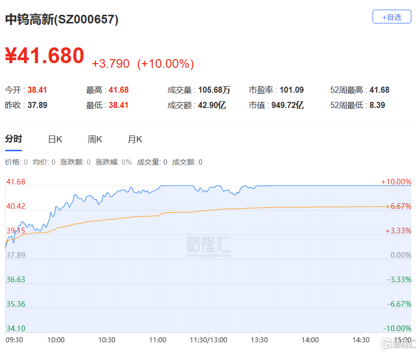 今日收报41.68元,涨跌幅10.00%,偏离值9.36%,换手率7.32%,成交额42.90亿。机构净买入3.05亿元,深股通专用席位净买入3.25亿元,城管希净买入5998万元。