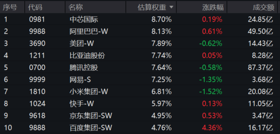 注:以上为恒生科技指数成分股,仅做展示,不作为个股推介。