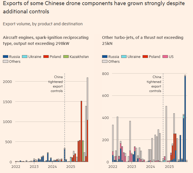 北京对所谓两用技术出口设有限制,涵盖大量无人机及相关部件,并自乌克兰战争爆发以来多次收紧规定。