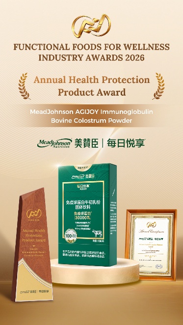 在美赞臣中国“婴幼儿 儿童成人”双轮驱动战略布局中,不仅关注儿童成长,也致力于为中老年群体提供科学营养守护。旗下成人营养品牌“每日悦享”,依托百年科研积淀,以精准科学配方,回应中老年人群的健康需求,守护家人的健康。该系列旗下产品免疫球蛋白牛初乳粉固体饮料在2026年亚太功能食品健康峰会(FFWS 2026)中获“年度保护力健康大奖”,备受行业认可。