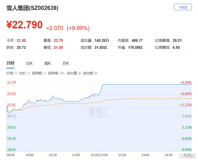 城管希:净买入雪人集团1.507亿元