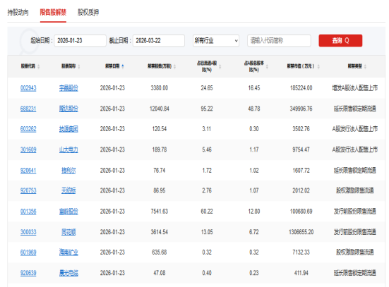 【限售解禁】