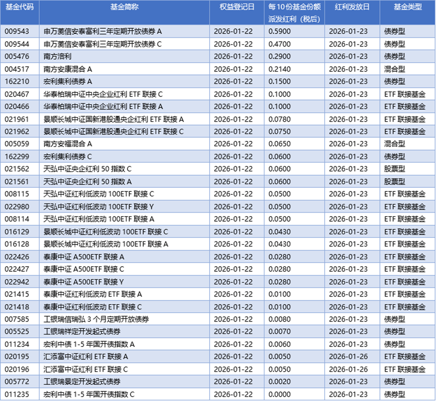 四、01月22日基金分红一览