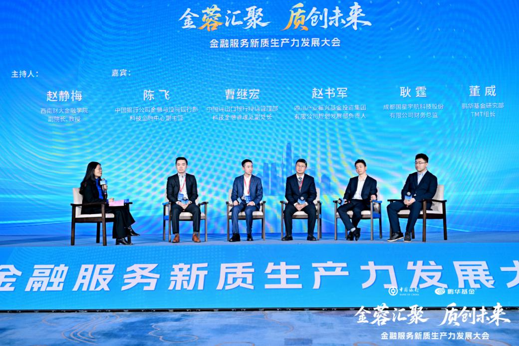 随后进行的圆桌讨论环节进一步深化了讨论维度。讨论由西南财经大学金融学院常务副院长赵静梅教授主持,与中国银行公司金融与投资银行部科技金融中心副主管陈飞、中国进出口银行授信管理部科技金融管理处副处长曹继宏、四川产业振兴基金投资集团有限公司规划发展部负责人赵书军、成都国星宇航科技股份有限公司财务总监耿霆及鹏华基金研究部TMT组长董威等各界嘉宾开展深入研讨。嘉宾们重点分享了服务新质生产力的可复制经验与当前挑战,并就如何推动政策性金融与商业性金融分工协作、构建“生态赋能”的产业支持体系进行了深入探讨。