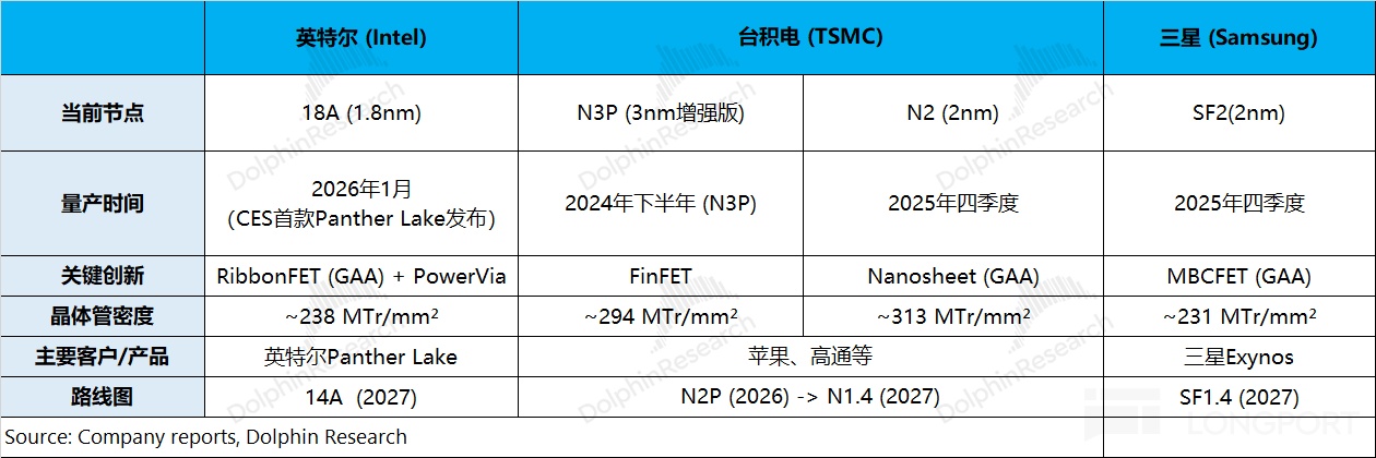 当前英特尔最新的 18A 在晶体管密度等方面还不如台积电,Panther Lake 的量产也意味着英特尔并未放弃追赶。如果英特尔、三星在代工方面实现良率的提升,也将在市场中收获一部分的 “订单机会”。