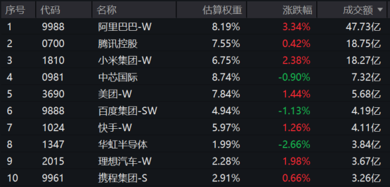 注:以上为恒生科技指数成分股,仅做展示,不作为个股推介。